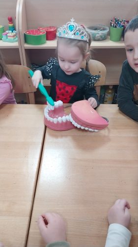 Uz niz poticaja kao što su slikovnice „Prljek i Mrljek-pokvareni zub“, „Mali vuk pere zube“, model zubala i četkica, igre, različite fotografije ova radionica kod djece je potaknula velik interes te pranje zubi sa prijateljima u vrtiću pretvorila u zabavnu edukativnu aktivnost.