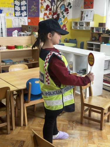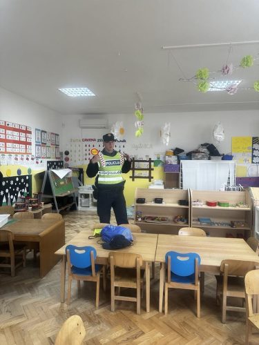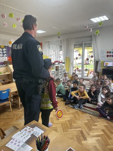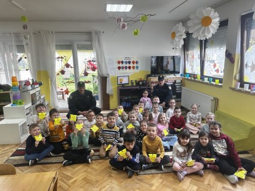 U ponedjeljak, 7. travnja Soviće su posjetili policajci u sklopu inicijative Moj prijatelj policajac. Policijski su službenici održali kratku edukaciju o ponašanju u prometu. Sovićima je bilo vrlo zanimljivo pa su s oduševljenjem i interesom slušali i sudjelovali u edukaciji. Kontakt policajac je najprije objasnio Sovićima zadaće prometnog policajca, a potom ih je upoznao i s osnovnim pravilima i ponašanjem u prometu. Sovići su tako naučili kako se trebaju ponašati u prometu kada hodaju pješice. Također, ponovili su što sve od opreme trebaju imati kada voze bicikl. Policajac ih je zamolio da oni sami podsjete svoje roditelje da uvijek trebaju biti vezani u automobilu i sjediti u autosjedalici. Sovići su ponovili što je to semafor te pješački prijelaz. Na kraju edukacije Sovići su dobili prigodan poklon, a to je reflektirajući prsluk. Budući da većina Sovića uskoro kreće u školu, osnovni cilj ove edukacije bio je pripremiti ih za buduće aktivno sudjelovanje u prometu kao i doprinijeti njihovoj sigurnosti kada se nalaze u prometu.