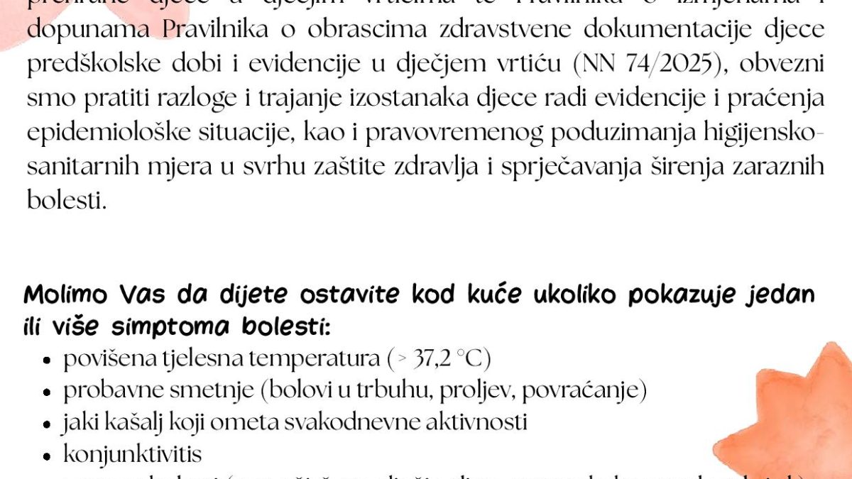 Ispričnica roditelja1. travnja 2026.Mindfulness aktivnosti10. travnja 2026. Obavijest za roditelje – IZOSTANCI I ISPRIČNICE Obavijest za roditelje
