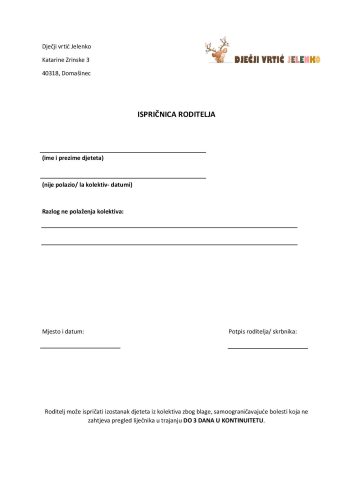 Obavijest za roditelje – IZOSTANCI I ISPRIČNICE