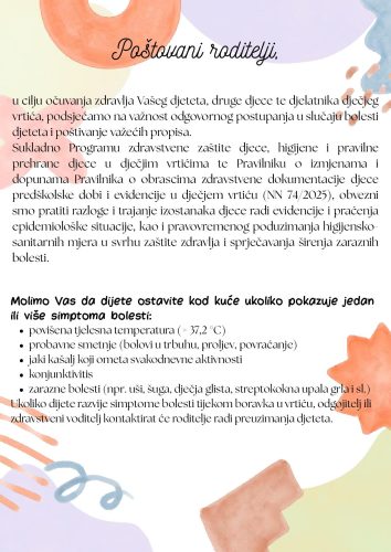 U našem Zdravstvenom kutku redovito dijelimo savjete o brizi za zdravlje djece. Za sva dodatna pitanja ili konzultacije sa stručnim timom, stojimo vam na raspolaganju. Hvala vam na povjerenju – čast nam je biti dio odrastanja vašeg djeteta i graditi zajedno s vama njegovu zdraviju budućnost.